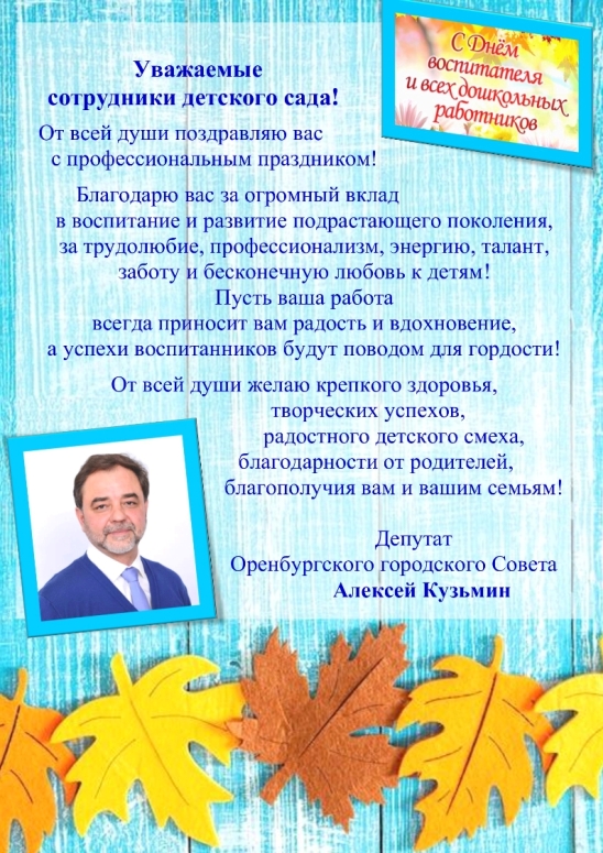 Накануне Дня воспитателя и всех дошкольных работников поздравил коллективы МДОАУ "Детский сад №18", МДОАУ "Детский сад №19" и МДОАУ "Детский сад №20" с профессиональным праздником.
